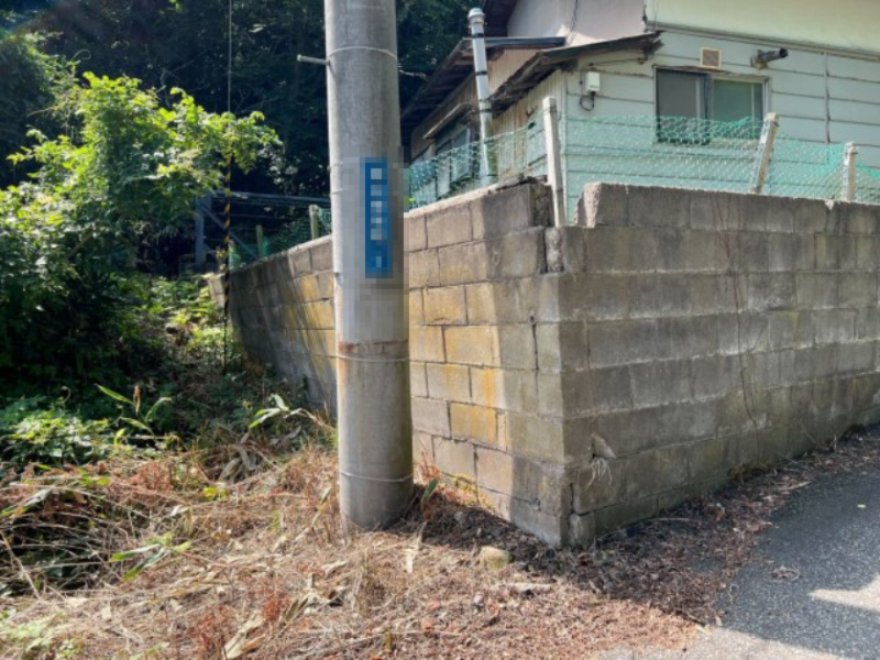 未登記の建物が建っております。建物を解体撤去し、更地でのお渡しとなります。 傾斜地に土盛りをし、平坦にしております。また、ブロック塀が傾斜しております。 |